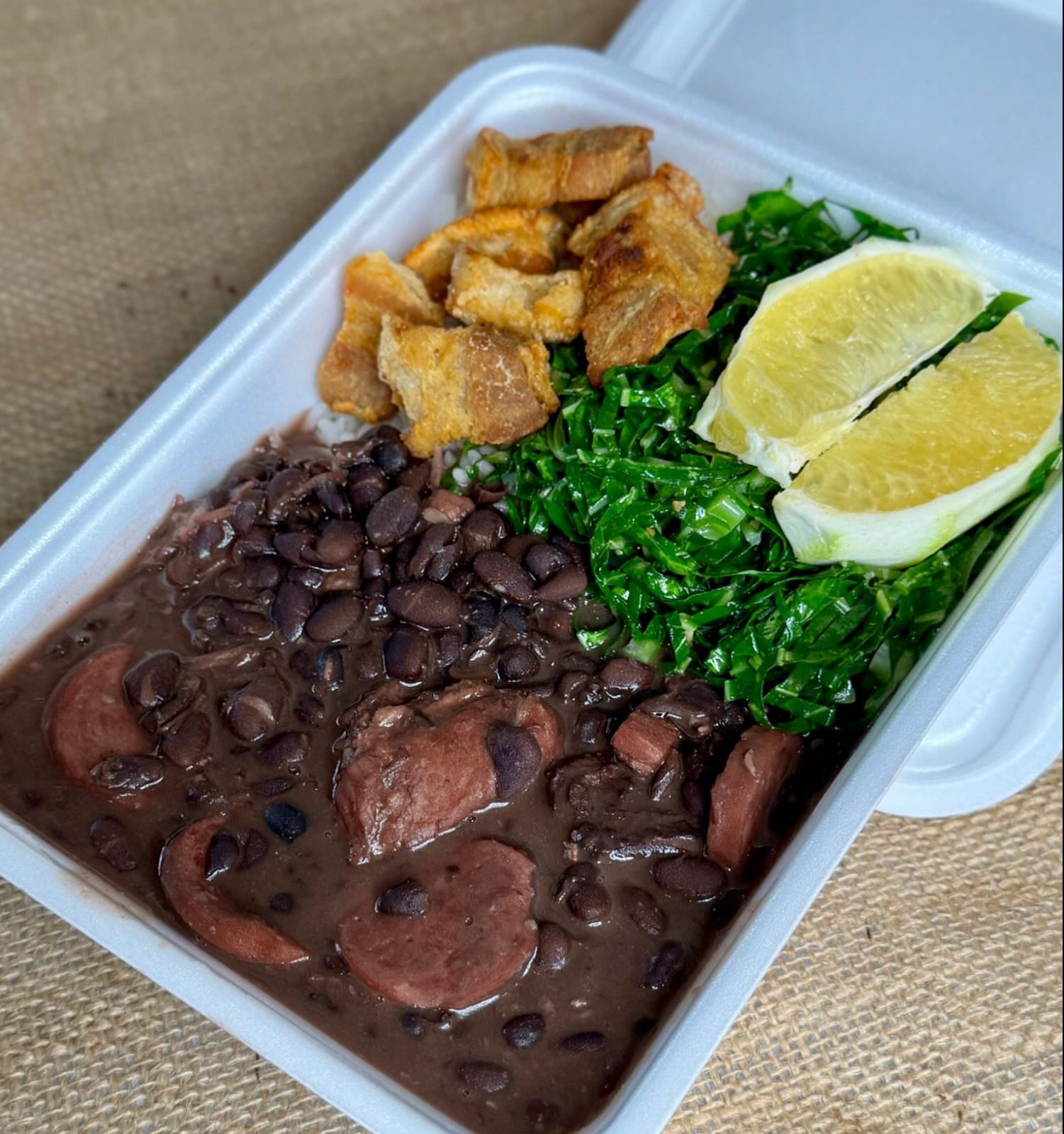 Feijoada (feijão preto + linguiça + carnes): 300 g.