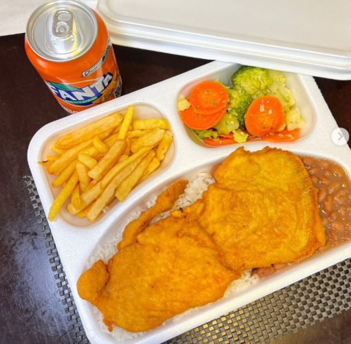 Marmita G, mais refrigerante lata fanta laranja (gelado)