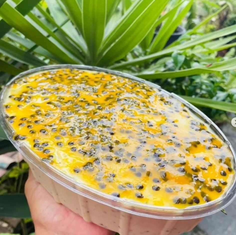 Creme de mousse (feito com leite condensado, creme de leite e suco concentrado de maracujá).